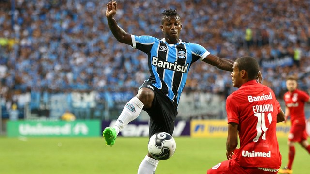 Vitinho driblou dois jogadores do Grêmio pela esquerda, mas chutou errado para
